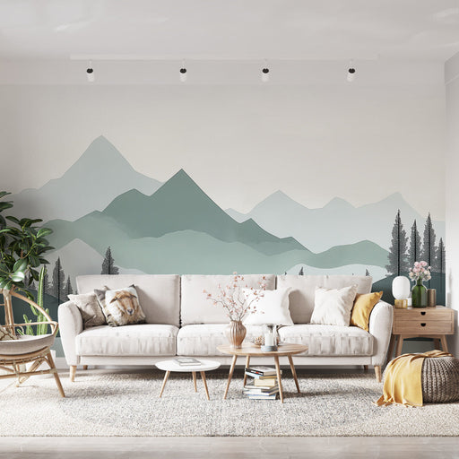 Ver todos os detalhesPapel de parede montanha e floresta | Paisagem reconfortante de montanhas e pinheiros