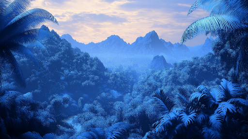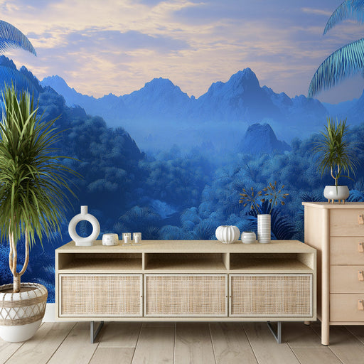 Ver todos os detalhesPapel de parede paisagem de montanha | Floresta tropical azul ao anoitecer