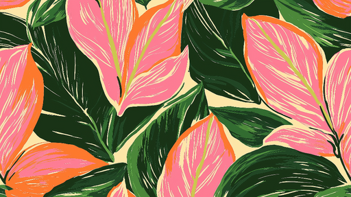 WonderMuralDescubra esta cativante ilustração de papel de parede mural com padrões de folhas coloridas. As tonalidades vibrantes de rosa, laranja e verde cria...