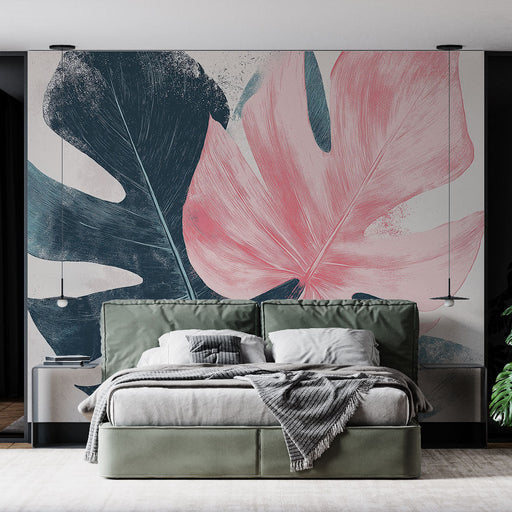 WonderMuralEste papel de parede mural apresenta um design cativante com grandes folhas tropicais, uma em rosa suave e a outra em verde escuro. A textura levem...