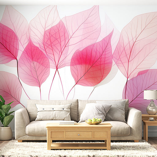 Ver todos os detalhesPapel de parede folhas rosas | Folhas delicadas e translúcidas