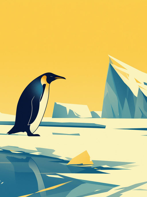 VisualsEste papel de parede cativante apresenta um majestoso pinguim em cima de uma placa de gelo, com um fundo minimalista e tons de amarelo quente. Os d...