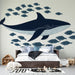 Tapete baleia | Ilustração de uma baleia nadando entre peixes estilizados