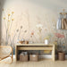 Papel de parede mural prairie | Ilustração fofa de flores silvestres em tons suaves