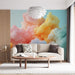 Este papel de parede mural captura a essência de nuvens pastel flutuando em um céu claro, com tons de rosa, amarelo, azul e laranja sutilmente misturados. As formas vaporosas e arejadas dão a impressão de leveza e suavidade, perfeitas para criar uma atmosfera tranquila.