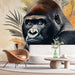 Papel de parede gorila | Retrato artístico de um gorila cercado por folhagem tropical