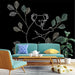 Papel de parede mural koala | Ilustrações gráficas de um koala em um fundo preto com folhas estilizadas