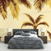Papel de parede leopardo | Padrão tropical com palmeiras e leopardo estilizado