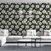 Este encantador papel de parede mural apresenta um padrão denso de delicadamente desenhadas flores brancas, cercadas por folhas verdes exuberantes em um fundo escuro. A combinação dessas cores cria um ambiente caloroso e sofisticado, ideal para aqueles que desejam adicionar um toque de natureza ao seu interior.