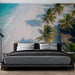 Para completar sua decoração, escolha acessórios de madeira clara ou cores neutras que destacarão a beleza deste papel de parede mural enquanto mantêm um ambiente tranquilo. Toques de verde ou amarelo nos têxteis também podem realçar a inspiração tropical.