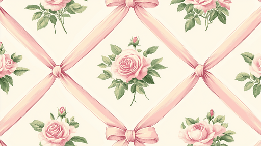 WonderMuralAceastă frumoasă tapet shabby chic prezintă un model fermecător de trandafiri roz înconjurați de fundite de satin, creând o atmosferă romantică și ...