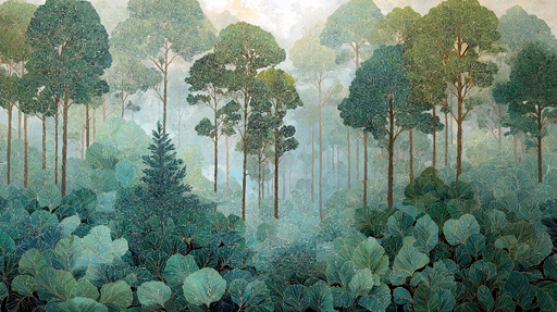 WonderMuralAcest tapet mural evocă o pădure liniștitoare, unde copacii măreți se ridică în nuanțe delicate de verde și albastru. Amestecul armonios de culori ...