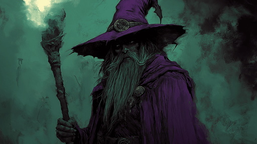 WonderMuralAceastă captivantă tapet mural prezintă un vrăjitor misterios, îmbrăcat într-o robă lungă purpurie și purtând o pălărie iconică. Privirea sa intens...
