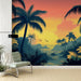 Acest tapet mural magnific ilustrează un apus tropical, cu palmieri majestuoși și un cer vibrant care variază de la roz la portocaliu. Marea strălucitoare și stâncile din fundal creează o ambianță liniștită și romantică, perfectă pentru a transforma orice cameră într-un adevărat sanctuar exotic.