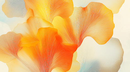 WonderMuralAceastă tapet sublimă prezintă un model de frunze de ginkgo în nuanțe vibrante de galben, portocaliu și alb moale. Liniile delicate și fluide evocă...