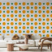 Adaugă o notă de fantezie și culoare spațiului tău cu tapetul nostru multicolor cu buline. Acest model retro, format din buline portocalii și verzi pe un fundal alb, este perfect pentru a crea o atmosferă veselă și dinamică în orice cameră.