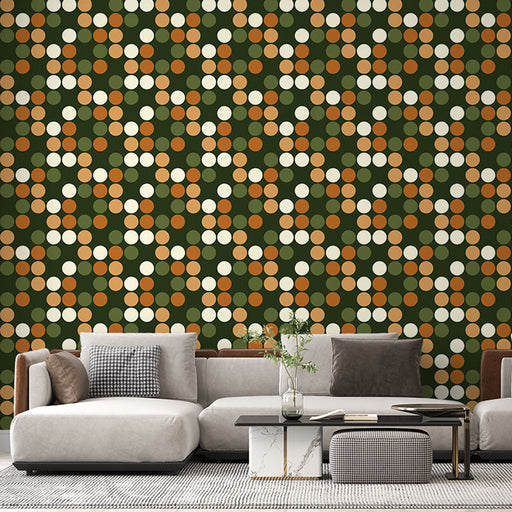 Studio SamaAceastă tapet cu model geometric oferă un stil retro cu cercurile sale colorate în nuanțe de verde, portocaliu și crem. Ideal pentru a aduce o notă...