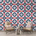 Adaugă o notă modernă și colorată interiorului tău cu tapetul mural geometric, cu modele de diamante în nuanțe de albastru, gri și roșu. Acest design unic este perfect pentru a transforma orice cameră, fie că este vorba de un living, dormitor sau birou.