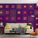 Descoperă tapetul mural geometric modern, o alegere perfectă pentru a energiza interiorul cu modelele sale îndrăznețe. Acest design constă din blocuri colorate în nuanțe de mov, roz și galben, aducând un aspect contemporan și vibrant.