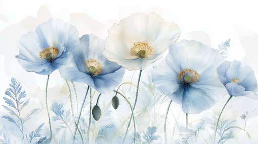 Art'loloDescoperiți tapetul nostru flori albastre, cu un frumos model floral în acuarelă. Nuanțele delicate de albastru și alb creează o atmosferă liniștit...