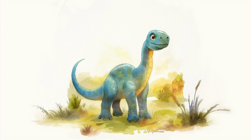 Vezi detalii completeTapet dinosaur | Desen în acuarelă al unui dinozaur albastru prietenos