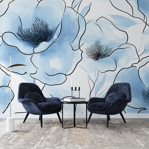 Art'loloDescoperă tapetul mural floral acuarelă, ideal pentru a aduce o notă de delicatețe și prospețime în interiorul tău. Cu petalele sale albastre și nu...