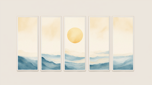Vezi detalii completeTapet peisaj acuarelă | Munții albastru gradient cu soare aurit