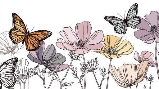 Vezi detalii completeTapet mural floral și fluturi | Design elegant de flori pastelate și fluturi delicati