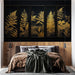 Imitație pictură tapet mural | Frunze aurii și fundal negru
