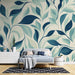 Tapet frunziș elegant | Frunze stilizate în nuanțe de albastru pe un fundal deschis