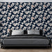 Tapet de flori marin | Model cu frunze delicate pe fundal albastru închis