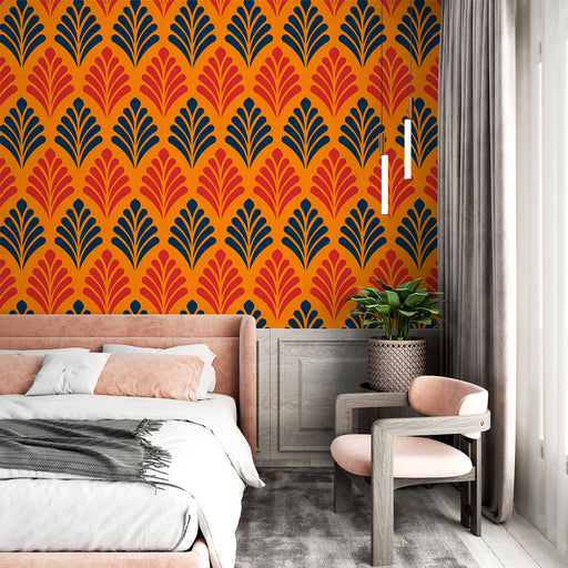 Studio SamaAdaugă o notă vintage interiorului tău cu tapetul nostru retro cu un model îndrăzneț. Nuanțele de portocaliu și albastru creează un contrast vibran...