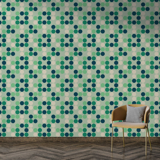 Studio SamaAdaugă o notă de farmec vintage interiorului tău cu acest tapet cu modele cu buline în tonuri de verde și albastru. Designul său retro este perfect...