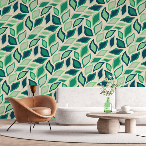Studio SamaÎnveselește-ți spațiul cu tapetul nostru mural cu frunziș verde și albastru. Modelul său vibrant de frunze joacă pe nuanțe de verde și albastru, cr...