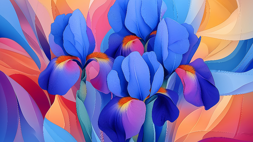 Vezi detalii completeTapet iris | Un buchet de iriși vibranți în nuanțe de albastru și portocaliu