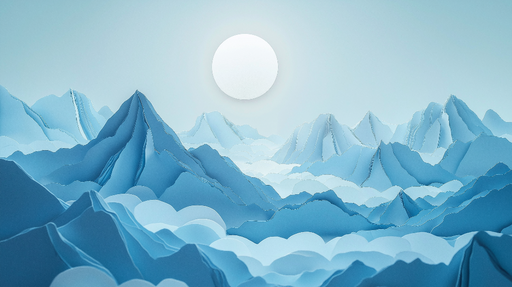 WonderMuralAceastă tapet captivantă prezintă un peisaj montan stilizat, creat cu o gamă delicată de nuanțe de albastru, evocând o atmosferă calmantă și senină...