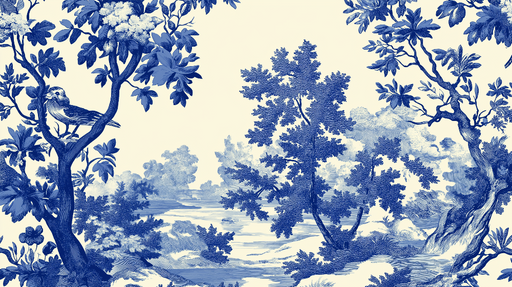 Vezi detalii completeTapet shabby chic | Scenă bucolică în albastru și crem cu pasăre