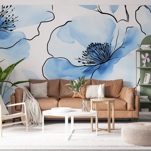 WonderMuralAceastă tapet mural prezintă un model de flori albastre magnific, creat cu o tehnică delicată de acuarelă care aduce o notă artistică și elegantă i...