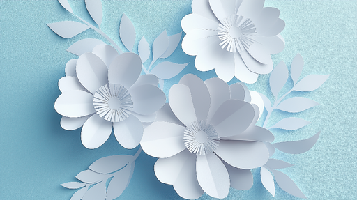Vezi detalii completeTapet flori pe hârtie | Model elegant de flori albe din hârtie pe fundal albastru