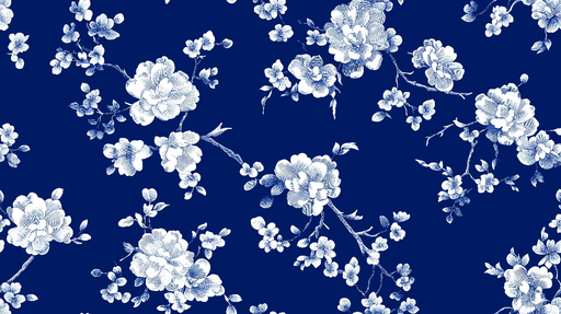 Vezi detalii completeTapet floral navy | Model de flori stilizate în nuanțe de albastru și alb