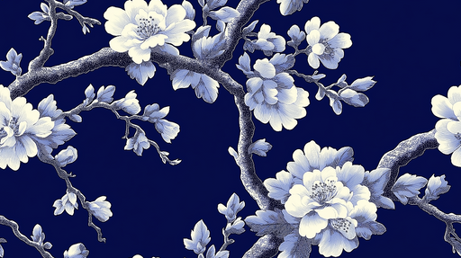 Vezi detalii completeTapet shabby chic | Flori albe delicate pe fundal albastru închis