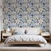 Tapet mural floral albastru și bej | Model de flori și frunze pe un fundal deschis