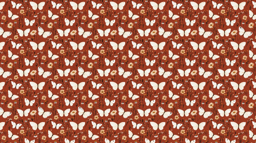 WonderMuralTapetul nostru mural exclusiv prezintă un model de fluturi albi plutind pe un fundal cald de rugină, însoțit de flori delicate și ierburi mici. Det...