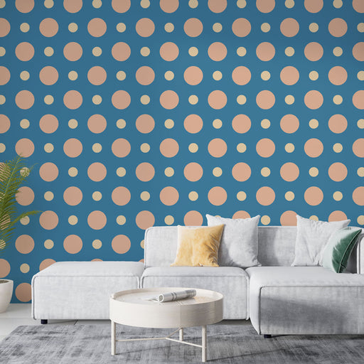 Studio SamaAceastă tapet cu buline oferă un design vesel și modern, cu buline mari și mici de culoare roz pastel pe un fundal albastru. Perfect pentru a aduce...