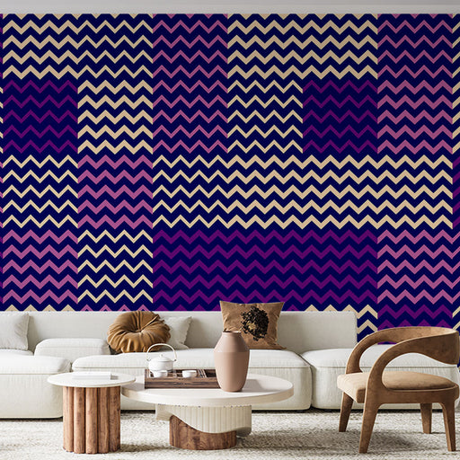 Studio SamaAceastă tapet mural zigzag în nuanțe de mov, roz și bej este opțiunea perfectă pentru a aduce o notă de modernitate și dinamism spațiului tău. Cu m...