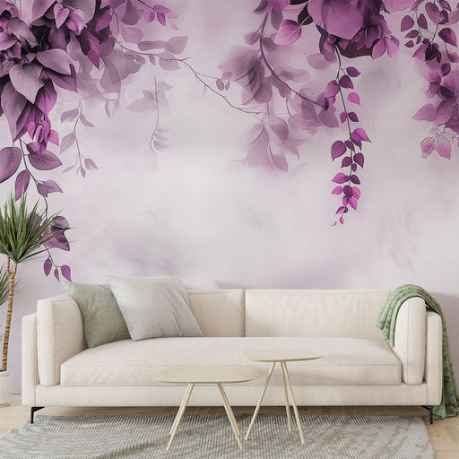 WonderMuralAcest tapet frumos prezintă un stil delicat cu frunze mov plutind pe un fundal moale, creând o atmosferă liniștită și calmantă. Nuanțele care varia...