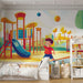Fototapet loc de joacă | Zonă de joacă colorată și copil fericit