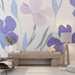 Această tapet mural prezintă un model magnific de iris în nuanțe delicate de albastru, violet și roz. Florile sunt însoțite de frunze fine, creând un ansamblu armonios pe un fundal alb strălucitor. Acest design evocă ușurință și grație, perfect pentru a aduce un strop de prospețime în interiorul tău.