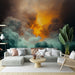 Această tapet mural prezintă un spectacol de nori cu nuanțe fascinante, oscilând între tonuri întunecate și izbucniri de lumină portocalie. Compoziția creează o atmosferă care este atât misterioasă, cât și caldă, perfectă pentru a adăuga caracter oricărei încăperi.