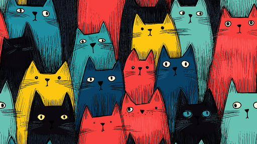 Vezi detalii completeTapet pisici colorate | Model jucăuș de pisici stilizate în culori vii